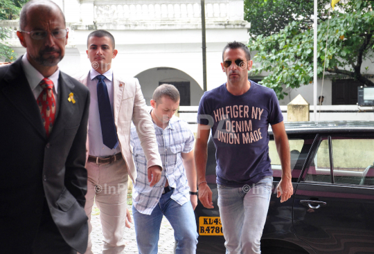 Italian Marines Massimiliano Latorre and Salvatore Girone coming out from the Ernakulam city police commissioner office by their daily appearance before the Ernakulam city police commissioner ,on the 4th day after bail at Kochi Wednesday 6th June 2012. The two marines are accused of fatally shooting two Indian fishermen from the Italian cargo vessel Enrica Lexie off southwest India. The marines were part of the cargo ship's security team, and India accuses them of mistaking the fishing boat for a pirate ship. Photo by AS Satheesh/Indian Photo Agency