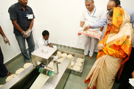 President Pratibha Patil in a rupees 33 crore meal complex at Tirulala in Tirupati on Thursday, 07/07/2011. Her Husband Devisingh Shekhawat, AP Governor ESL Narsimhan and CH N Kiran Kumar Reddy are also in the picture. Photo Credit: Indian Photo Agency