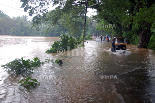 Heavy rains have continued lashing the district, leaving many rivers, Netravati and Kumaradhara in particular, flowing in full spate, at Down Area of Bantwal Taluku on outskirts Mangalore City on Aug 07, 2012. The level is rising to levels considered dangerous. Normal life and transportation has been affected in many parts of the district. Photo by RK Bhat/Indian Photo Agency