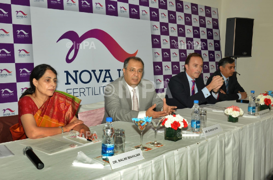 From Left to Right: Dr Nalini Mahajan, Director, Nova IVI Fertility, Suresh Soni, Chairman and CEO, Member, Board of Directors (Nova IVI Fertility), Dr Juan Antonio Garcia Velasco- Member, Board of Directors (Nova IVI Fertility) and Director of IVI- Madrid, Dr. Manish Banker - Medical Director, Member, Board of Directors (Nova IVI Fertility) during a Nova IVI Press Briefing in New Delhi on December 13, 2012. Photo Credit: Indian Photo Agency