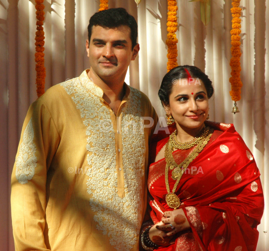 Bollywood Actress Vidya Balan along with Sidharth Roy Kapoor CEO UTV during their marriage ceremony at Bandra in Mumbai, India on December 14, 2012. Photo Credit: Indian Photo Agency