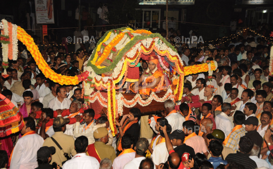 Thirtha swamiji of Sri Sode Vadirajaru Mutt in Pallakki during Paryaya festival marking the take over of Pooja rights of Lord Krishna, at Srikrishna Temple, in Udupi, Karnataka, India on 18/01/2012. Photo by RK Bhat/Indian Photo Agency