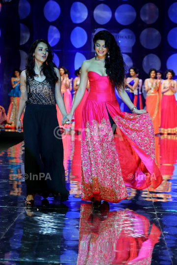 Bollywood actress Jacqueline Fernandez walks the ramp for designer Jyotsna Tiwari during the Aamby Valley India Bridal Fashion Week (AVIBFW) 2013, in New Delhi, India on July 24, 2013. Photo Credit: Indian Photo Agency (InPA)