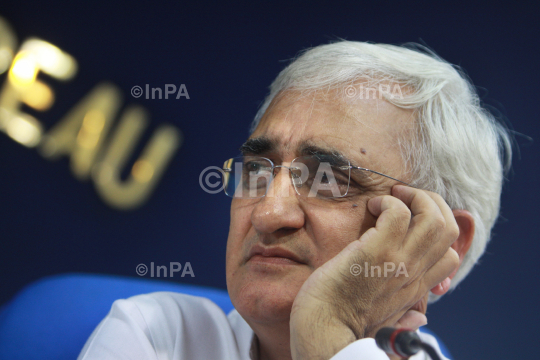Indian Law Minister Salman Khurshid during a press conference expressing dismay that the opposition was not allowing for a debate on the CAG report on coal block allocation losses in New Delhi on August, 24, 2012. Photo Credit: Indian Photo Agency
