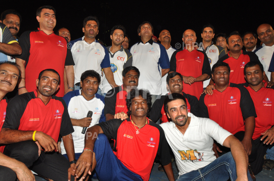 Sunil Shetty, Mahesh Manjrekar, Johnny Lever, Aashish Chaudhary, Varun Badola, Dhanraj Pillay, Robin Uthappa, Paul Valthaty, Vatsal Sheth during the 4th Corporate National Kabaddi Championship, match between Mumbai heros vs sports stars played at shivaji park in Mumbai on 24/11/2011. Photo by Sachin Halde/Indian Photo Agency
