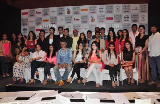 Fashion designer Archana Kochhar with other designers during a press conference of Lakme Fashion Week Summer/Resort 2013 in Mumbai, India on February 26, 2013. Photo Credit: Indian Photo Agency (InPA)