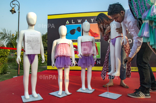 Dresses made of condoms, to observe the International Condom Day on the eve of Valentine's Day to raise awareness about safe sex practises at an event organised by Aids Healthcare Foundation in New Delhi, India, on Feb 13, 2014. Photo Credit: Indian Photo Agency (InPA)