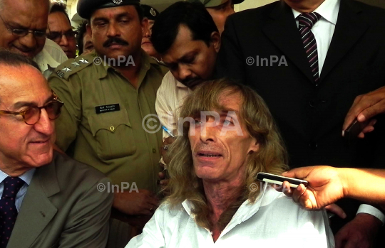 Italian national Paolo Bosusco after released by Maoists in Bhubaneswar, Odisha on April 11, 2012. After being in captivity for nearly a month, Bosusco has been released by Maoists in Odisha today morning. He was handed over by the Maoists to their mediator Dandapani Mohanty and some journalists in the forest of tribal-dominated Kandhamal district. Photo by Subrat Mohapatra/Indian Photo Agency