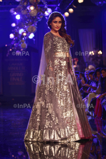 Bollywood actress Kareena Kapoor walks the ramp showcasing designer Manish Malhotra's "Gloss" collection during the grand finale of Lakme Fashion Week Winter Festive 2014 in Mumbai on Sunday, 24 August 2014. Photo by Indian Photo Agency (InPA)