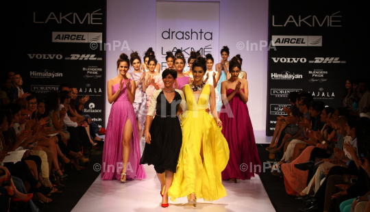 Fashion designer Drashta with models during the Lakme Fashion Week 2012 Winter/Festive, in Mumbai, India on August 4, 2012. Photo Credit: Indian Photo Agency