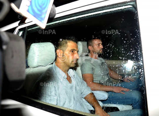 Italian Marines Massimiliano Latorre and Salvatore Girone coming out from the Ernakulam Borster School after they get bail in Kerala on Saturday night ,2nd may 2012. The two marines are accused of fatally shooting two Indian fishermen from the Italian cargo vessel Enrica Lexie offsouthwest India. The marines were part of the cargo ship's security team, and India accuses them of mistaking the fishing boat for a pirate ship. Photo by AS Satheesh/Indian Photo Agency