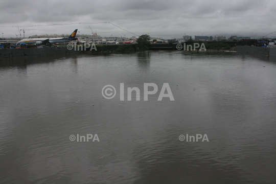 Men walk through a flooded railway track after heavy rains in Mumbai, India, Monday, Aug. 29, 2011. Train services were disrupted due to water logging in the tracks in several low-lying areas in the city. Photo by Sachin Halde/Indian Photo Agency