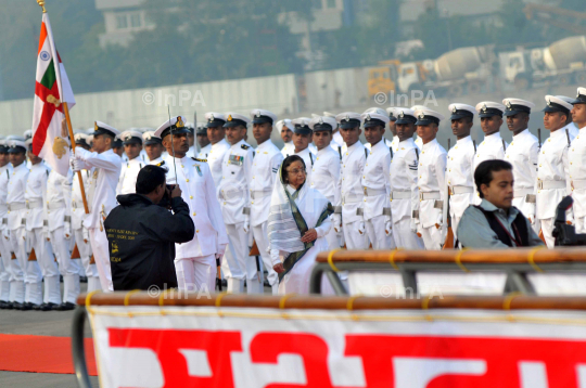 Indian President, Pratibha Devisingh Patil inspecting the Guard of Honour, during the 10th President's Fleet Review (PFR) in Mumbai, on December 20, 2011. A total of 81 ships participated in the event which includes fly past by 44 aircraft from Navy and Coast Guard. Photo by Sachin Halde/Indian Photo Agency
