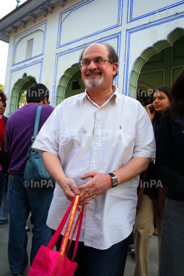 A file photo of Author Salman Rushdie, Indian-born British American novelist and essayist during DSC Jaipur literature festival in Jaipur, Rajasthan, India on 1901/2007. He has withdrawn from India's biggest literary festival, saying that he feared assassination after influential Muslim clerics protested against his participation.Photo Credit: Indian Photo Agency