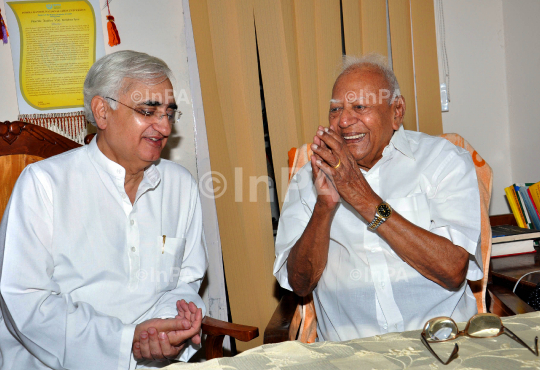 Union Law minister Salman Khurshid meets with the former Supreme Court Judge Justice V R Krishna Iyer at his house in Kochi, Kerala on Monday 11 June 2012. Photo by AS Satheesh/Indian Photo Agency