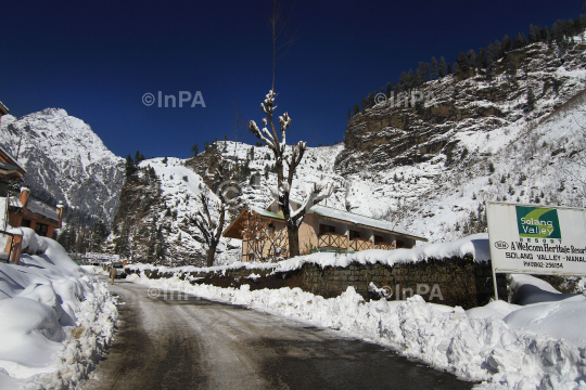 Travel: Solang Valley after fresh Snowfall in Manali, Himachal Pradesh, India. Solang Valley derives its name from combination of words Solang and Nallah. It is a side valley at the top of the Kullu Valley in Himachal Pradesh, India 14 km northwest of the resort town Manali on the way to Rohtang Pass, and is known for its summer and winter sport conditions. Photo Credit: Indian Photo Agency