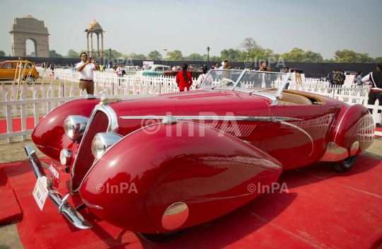 A view of vintage cars on display at the 7th edition of the 21 Gun Salute International Vintage Car Rally and Concours Show 2017 near India Gate in New Delhi, India on Friday Feb 17, 2017. The 7th edition of the show is showcasing rare national and international vintage cars. Photo Credit : Indian Photo Agency (InPA)