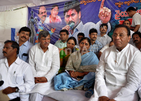 YSR Congress party, party honourary president YS Vijayalakshmi with party workers during a protest against the government's decision to create a separate state of Telangana, at Jantar Mantar in New Delhi, India on August 27, 2013. Photo Credit: Indian Photo Agency (InPA)